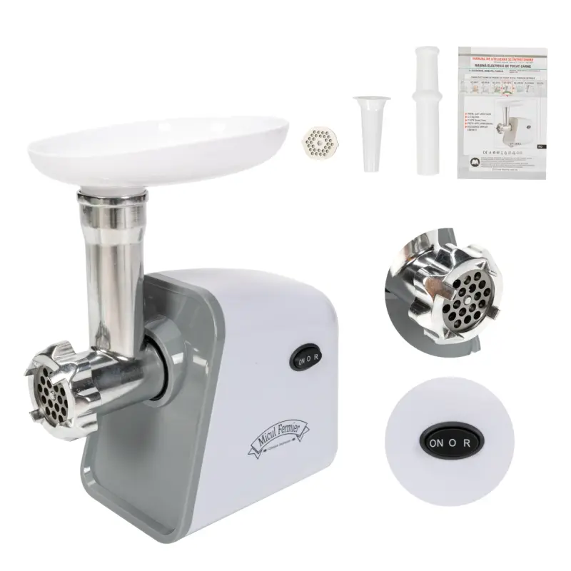 Mașină de tocat carne electrică 500W MG10B, GF-2032 Transformă gătitul într-o experiență mai rapidă și mai ușoară! Putere de 500W – toacă eficient carnea pentru preparatele tale preferate; Construcție robustă și durabilă – concepută să reziste utilizării îndelungate; Funcție de inversare – scapă rapid de blocaje și continuă fără întreruperi; Ușor de utilizat – tot ce trebuie să faci este să cureți carnea, să îndepărtezi pielea și oasele, să o tai în bucăți mici și să pornești aparatul. Ideală pentru orice bucătărie modernă, această mașină de tocat îți oferă rezultate perfecte de fiecare dată.