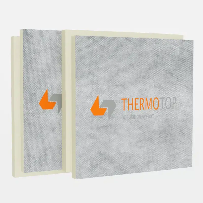 Plăcile PIR THERMOTOP DV îmbină performanțele termice ale spumei PIR cu avantajele membranei PE+PP, asigurând o difuzie controlată a vaporilor și o aderență ridicată a straturilor de mortar adeziv și finisaje exterioare. Datorită versatilității lor, sunt potrivite pentru o gamă largă de aplicații de termoizolare: fundații, acoperișuri tip șarpantă, terase circulabile, necirculabile sau verzi, planșee și pardoseli, precum și în sistemele ETICS sau fațade ventilate. Plăcile PIR THERMOTOP sunt recomandate în termosistem ETICS, fiind certificate în clasa de reacție la foc B-s1, d0 și cu permeabilitate medie la vapori.