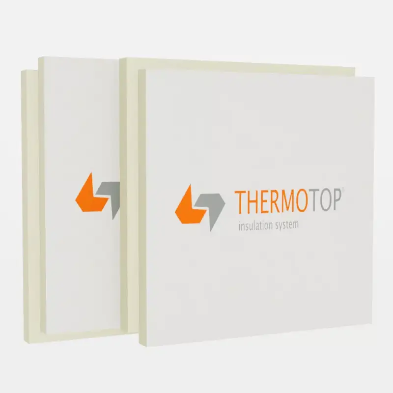Plăcile PIR THERMOTOP KP îmbină performanțele termice ale spumei PIR cu fețele din hârtie Kraft, oferind o soluție premium de izolare termică, versatilă și durabilă. Datorită fețelor Kraft, plăcile asigură aderență excelentă la straturile de hidroizolație și la finisajele interioare, fiind potrivite atât pentru fundații, planșee și terase, cât și pentru pereți interiori.